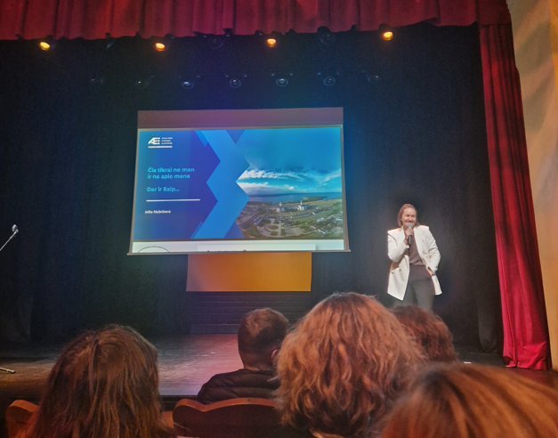 Po P. Kliusaičio ganėtinai energingo pasirodymo ritmas atrodė sustos, kai į sceną stojo Jolita Mažeikienė, Ignalinos atominės elektrinės komunikacijos vadovė, bet, oho, kokia tai buvo kokybė. Žinot, išgirsti žodžių junginį – Ignalinos atominė elektrinė – ir galvoji, o tai jos dar neuždarė? Pasirodo, kad ne tik neuždarė, bet ji dar ir veiks šimtą metų. Na, gerai gal ne šimtą, bet veiklos ten yra dar daug metų į priekį. Būtent apie tai ir papasakojo Jolita.