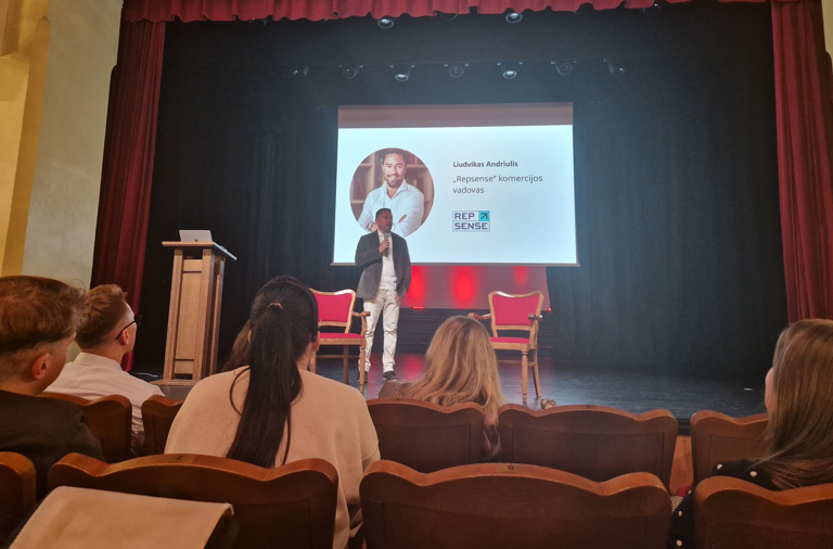 L. Andriulis savo pranešimu pakeitė negalėjusį dalyvauti M. Katkų ir kalbėdamas apie „Repsense“ įvardino, jog jie turi unikalią technologiją stebėti trumpus video bei prekės ženklų paminėjimus juose (kurių yra apie 30 proc. tarp visų paminėjimų visose formose).